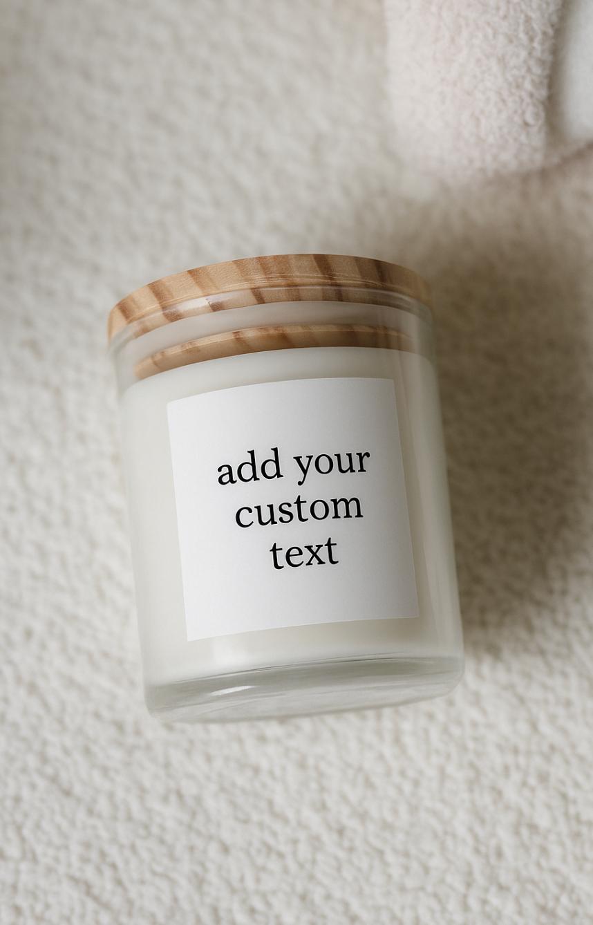 A hand-poured candle with a customizable label — add the baby’s name, a meaningful date, or a sweet message