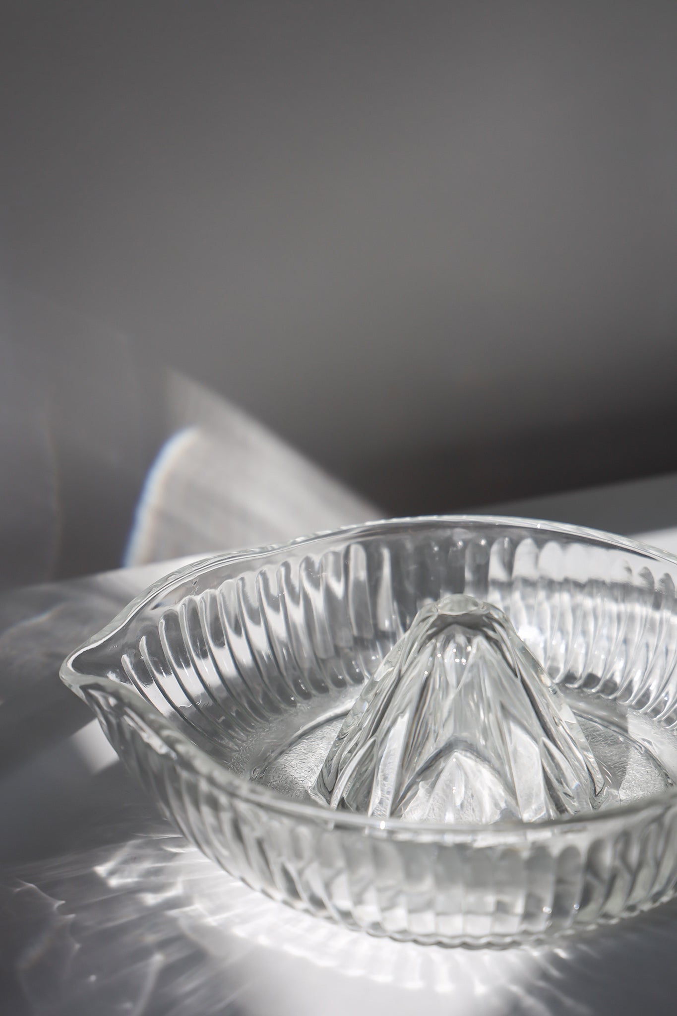A timeless kitchen classic, this clear glass citrus juicer brings charm and function to your countertop. Its ribbed edges, built-in spout, and sturdy design make it perfect for squeezing fresh lemons, limes, and oranges—with all the nostalgic beauty of old-world kitchenware.